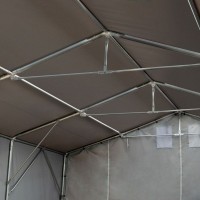 Ta konstrukcija šotora zagotavlja varnost, kljubuje vetru in vremenskim vplivom ter je zasnovana za celoletno uporabo. Skladiščna hala Outlander svojo izjemno stabilnost dolguje približno 50 % več jekla, ki je vgrajeno v njegove izjemno močna stojala in dodatne ojačitvene elemente na strehi in tleh. Na ta način se lahko sile optimalno razpršijo in šotor nudi zanesljivo zaščito skozi vse leto. Pocinkane jeklene cevi so odlična osnova. Zagotavljajo odlično zaščito pred korozijo in vremenskimi vplivi ter so manj občutljive na udarce. Debelina jekla in premer jeklene cevi sta posebej prilagojena visokim zahtevam, podaljšujeta dobo uporabe tega šotora in ga delata izjemno vzdržljivega.