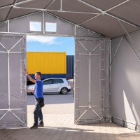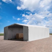 Skladiščna hala je vstopni razred v kategoriji skladiščnih hal. Ponuja solidno osnovno opremo in se lahko uporablja vse leto. Pocinkana jeklena konstrukcija s fiksnim talnim okvirjem in ojačitvenimi jeklenimi elementi v strehi je odporna na veter in vremenske vplive. Za večjo stabilnost so vse noge dvakrat pritrjene skupaj, na zelo velike osnovne plošče na tleh. Visokokakovostna PVC ponjava ima visoko odpornost na trganje zahvaljujoč mrežasti notranji tkanini, odporni na trganje 850 N ali 85 kg in vse leto ščiti blago in blago pred vetrom in vremenskimi vplivi. Strešna in stranska ponjava sta izdelana iz enega kosa in zagotavljata večjo stabilnost. Ponjava je poravnana in napeta z integriranim sistemom za napenjanje. Brez težav je možna tudi kasnejša prenastavitev ponjave. Skladiščna hala je idealna kot skladišče ali delovni prostor, ki ponuja poceni alternativo trdnim zgradbam.